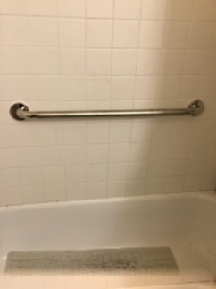 Evelyn, 81, lives alone and requires her walker to move around her house. Unfortunately, her home is not designed to accommodate a walker. There are several steps leading up to her front door and, once inside, a step down into her living room. Out of necessity, her hall closet doorknob became her make-shift grab bar to allow her to step down and move her walker into position. The Dignity at Home Fall Prevention Program assessed Evelyn’s home and installed a grab bar near her inside step, eliminating her potentially hazardous grasp on the closet doorknob.
